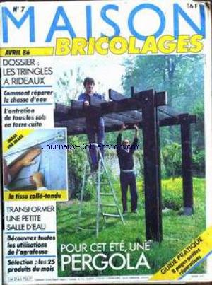 Download MAISON BRICOLAGES [No 7] du 01/04/1986 - MAISON BRICOLAGES DOSSIER - LES TRINGLES A RIDEAUX - COMMENT REPARER LA CHASSE D'EAU - L'ENTRETIEN DE TOUS LES SOLS EN TERRE CUITE - LE TISSU COLLE-TENDU - TRANSFORMER UNE PETITE SALLE D'EAU - POUR CET ETE UNE PERGOLA. PDF